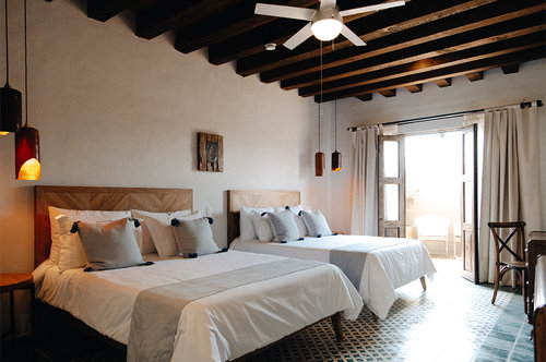 Amplias habitaciones con vista al patio central del hotel diseñadas para crear un ambiente agradable...